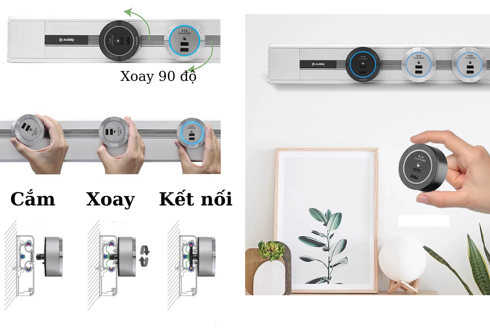 Bộ điều hợp và phụ kiện có thể được lắp và tháo tự do ở bất kỳ đâu dọc theo Đường ray Eubiq